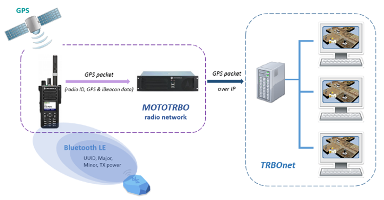 當(dāng)對(duì)講機(jī)接收不到GPS衛(wèi)星的定位信號(hào)移動(dòng)到建筑物內(nèi)部時(shí),對(duì)講機(jī)就會(huì)開(kāi)啟內(nèi)置的藍(lán)牙模塊,自動(dòng)掃描周?chē)鷌Beacon藍(lán)牙信標(biāo)發(fā)出的定位信號(hào),以此來(lái)獲取對(duì)講機(jī)在建筑物內(nèi)的移動(dòng)軌跡和位置信息。
